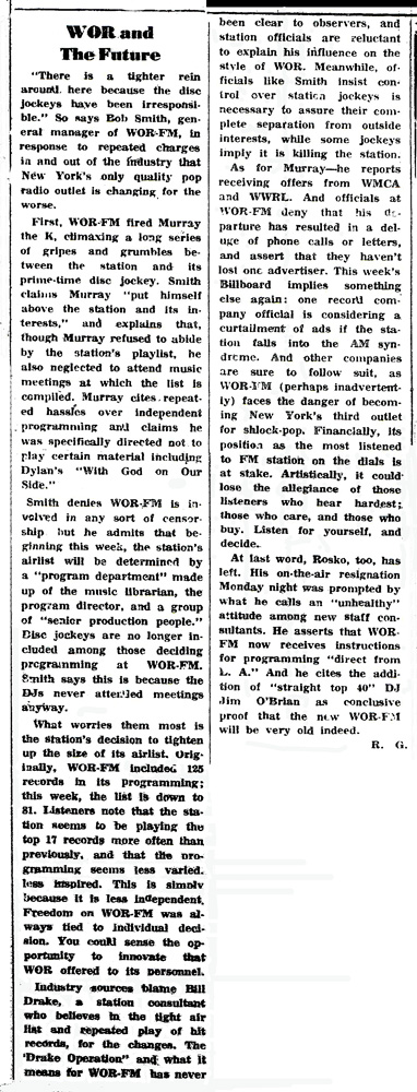 A very critical editorial on the firing of Murray the K and the Drake