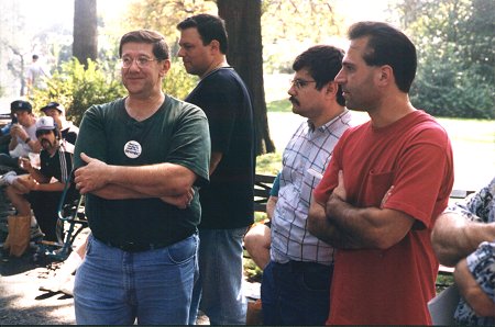 Allan Sniffen (red shirt and $25,000 Button) and Bryan Durr (with camera). Behind Allan is Dave Scott and behind Bryan is Alex Philippidis